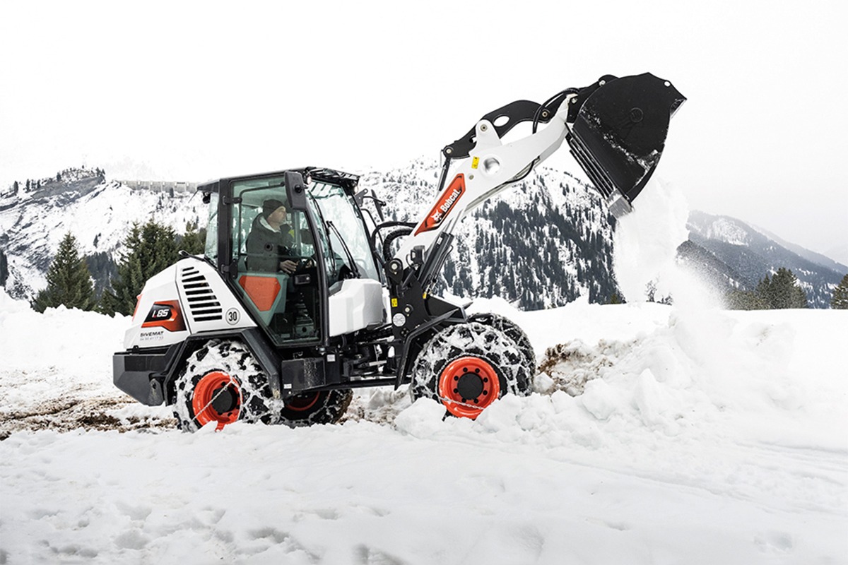 Owner Grégoire uses Bobcat S550 and S130 loaders — recently joined by an L85 articulated loader — to clear deep snow in just 30 minutes, a task that once took hours.
