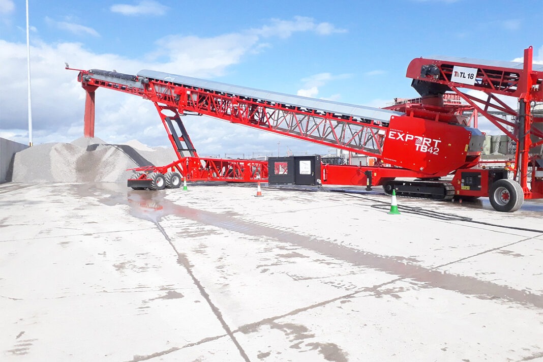 - Telestack supplied an integrated, three-unit mobile system: a HF 12 Hopper Feeder, a TL 18 Link Conveyor, and a TB 42 Shiploader.