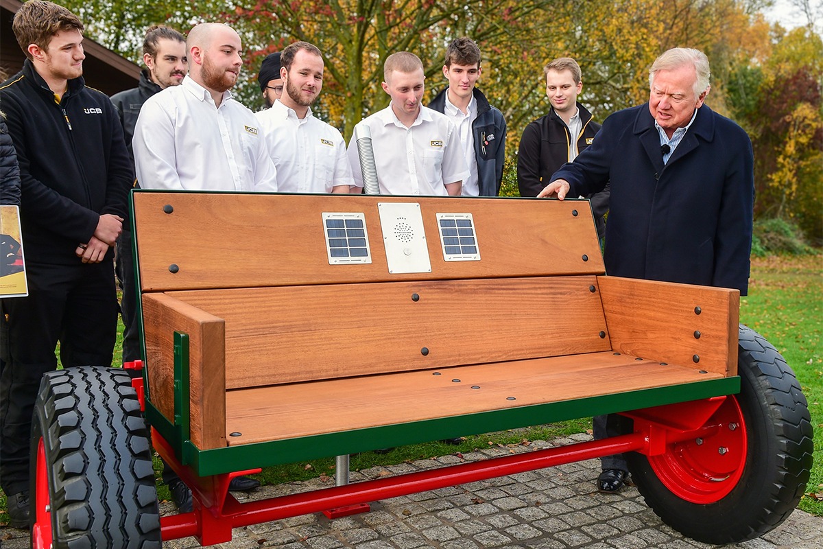 Lord Bamford said: “It’s a real thrill to unveil this listening bench and I hope people will enjoy sitting here and listing to stories about JCB. What I think is so clever is the way that our apprentices have integrated speakers into the bench and when I pressed the button, who should be speaking but my father, which was very emotional to hear.”