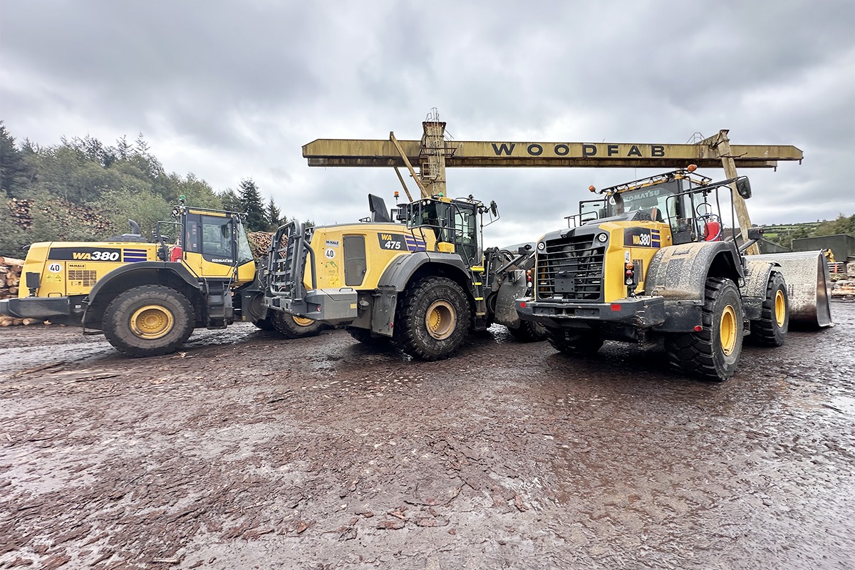 Woodfab Timber Ltd in Aughrim, Co. Wicklow, has strengthened its high-output timber operation with the addition of two new Komatsu wheeled loaders — the WA475-11 and WA380-8 — supplied by McHale Plant Sales, Komatsu’s authorised distributor in Ireland.
